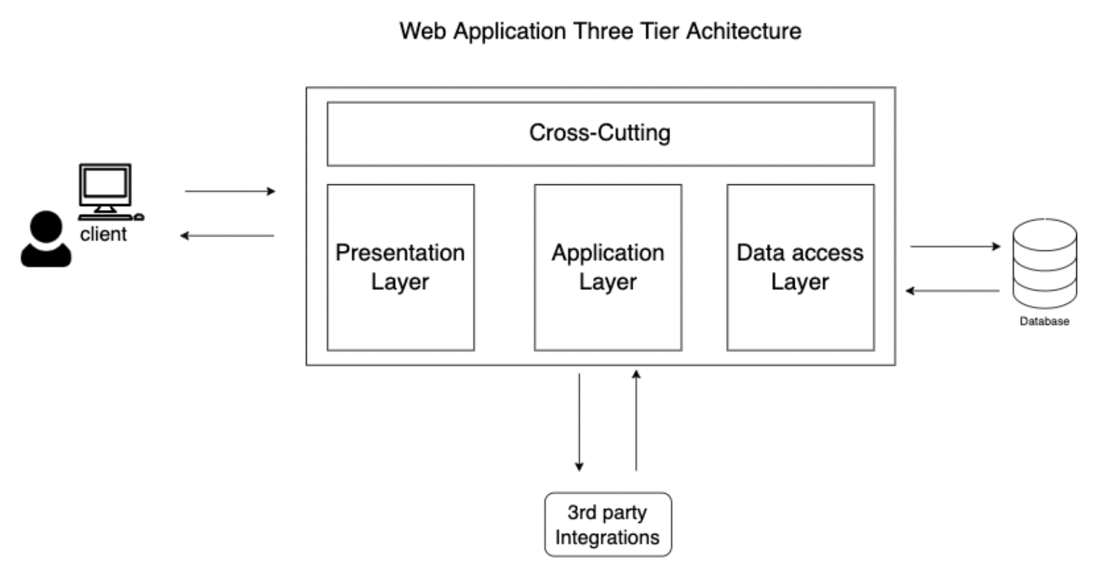 - Presentation Layer : 이 계층은 유저와 브라우저 등을 이용해 직접적으로 접촉을 한다. Web Server가 이 영역에 포함되며, 유저 인터페이스 요소들을 포함한다.