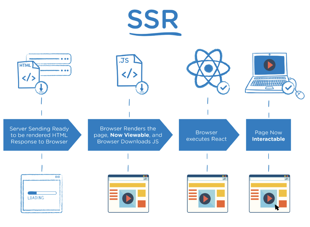 서버에서 웹 페이지를 브라우저로 보내기 전에, 서버에서 완전히 렌더링했기 때문에 Server Side Rendering 이라고 한다.